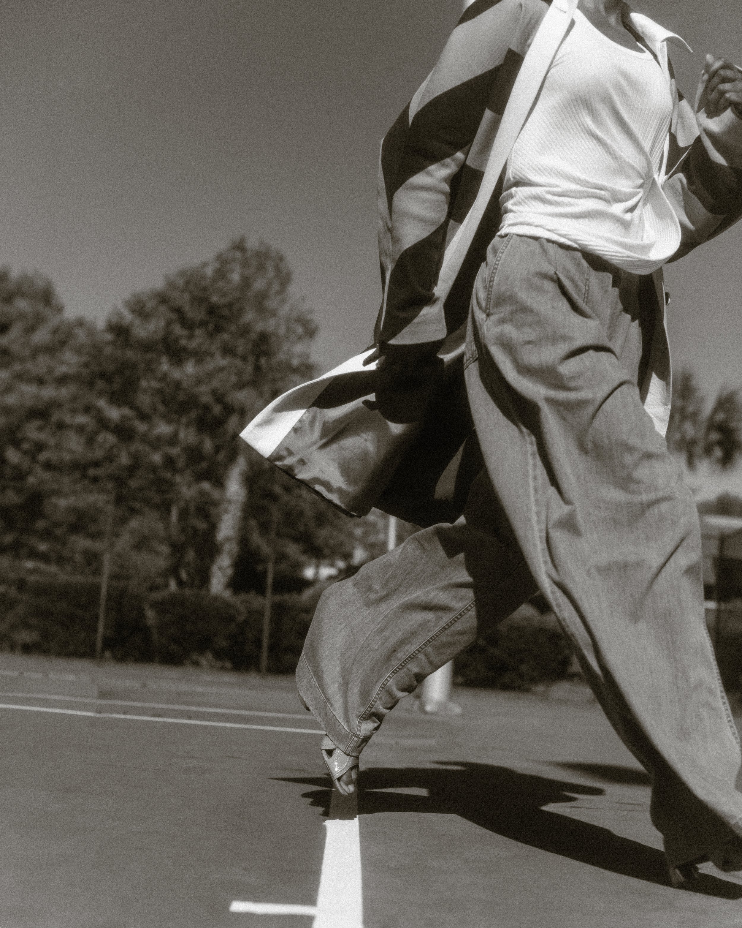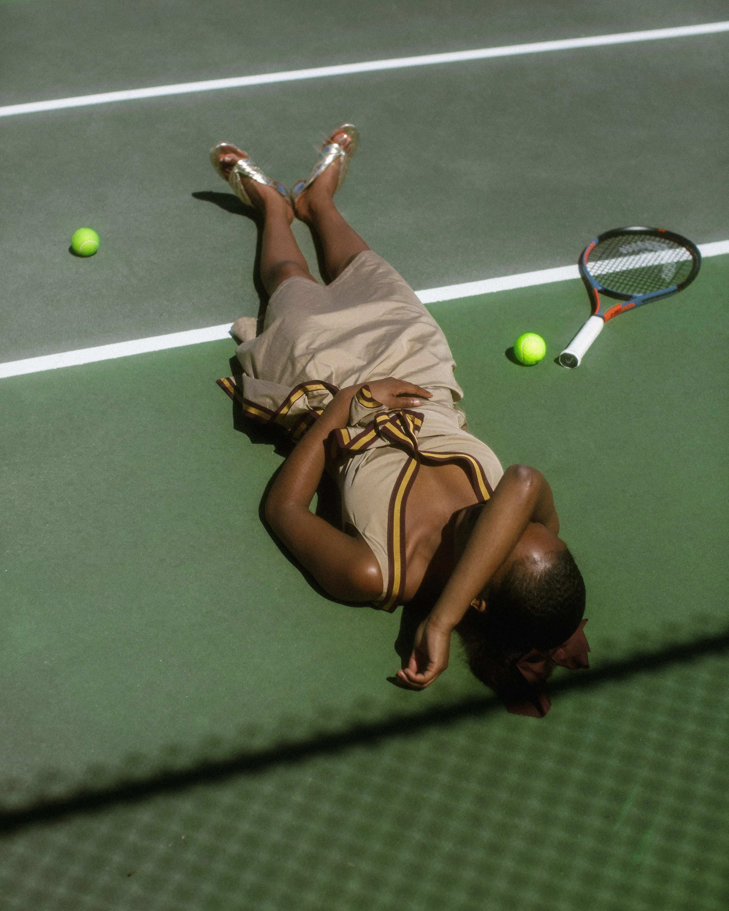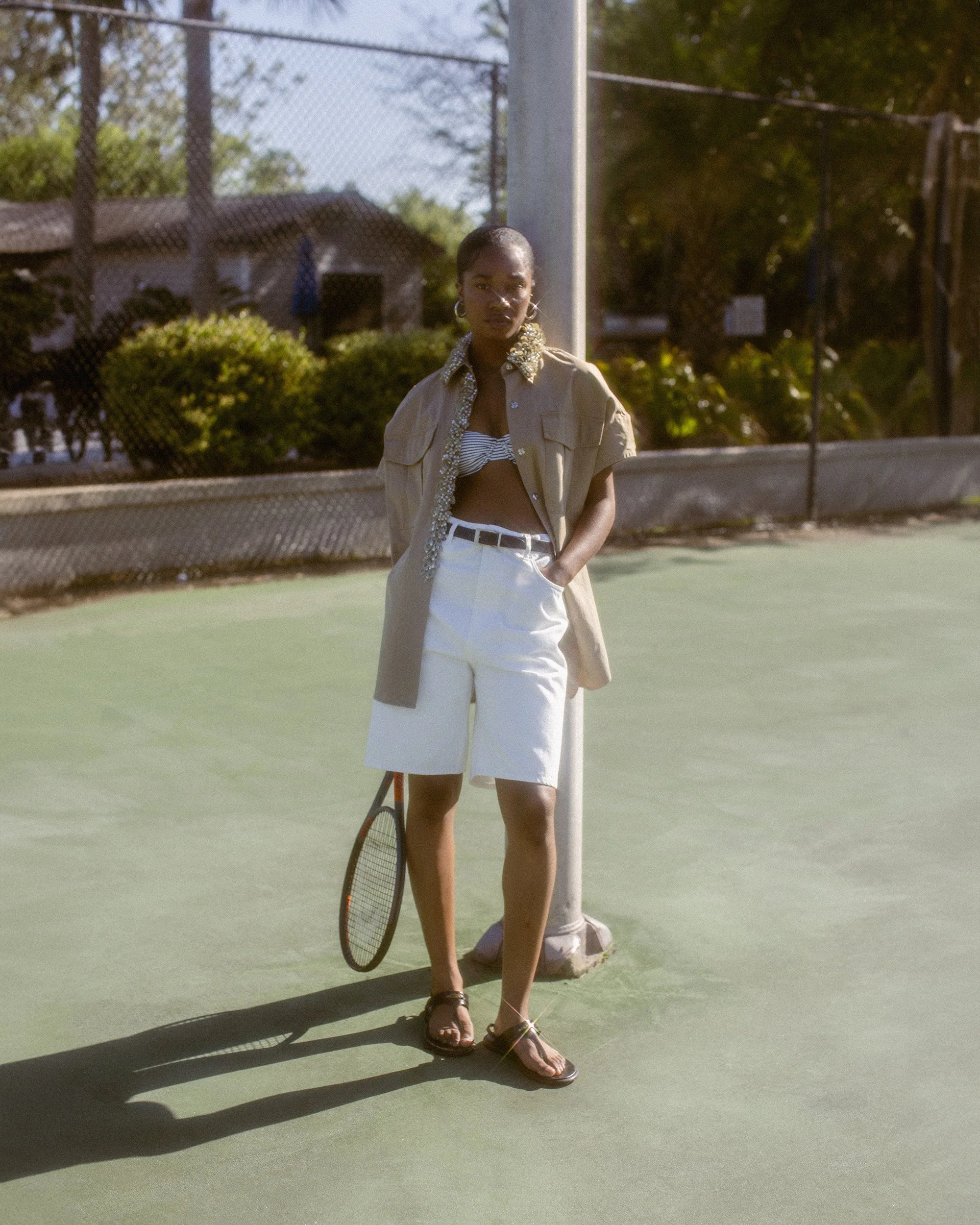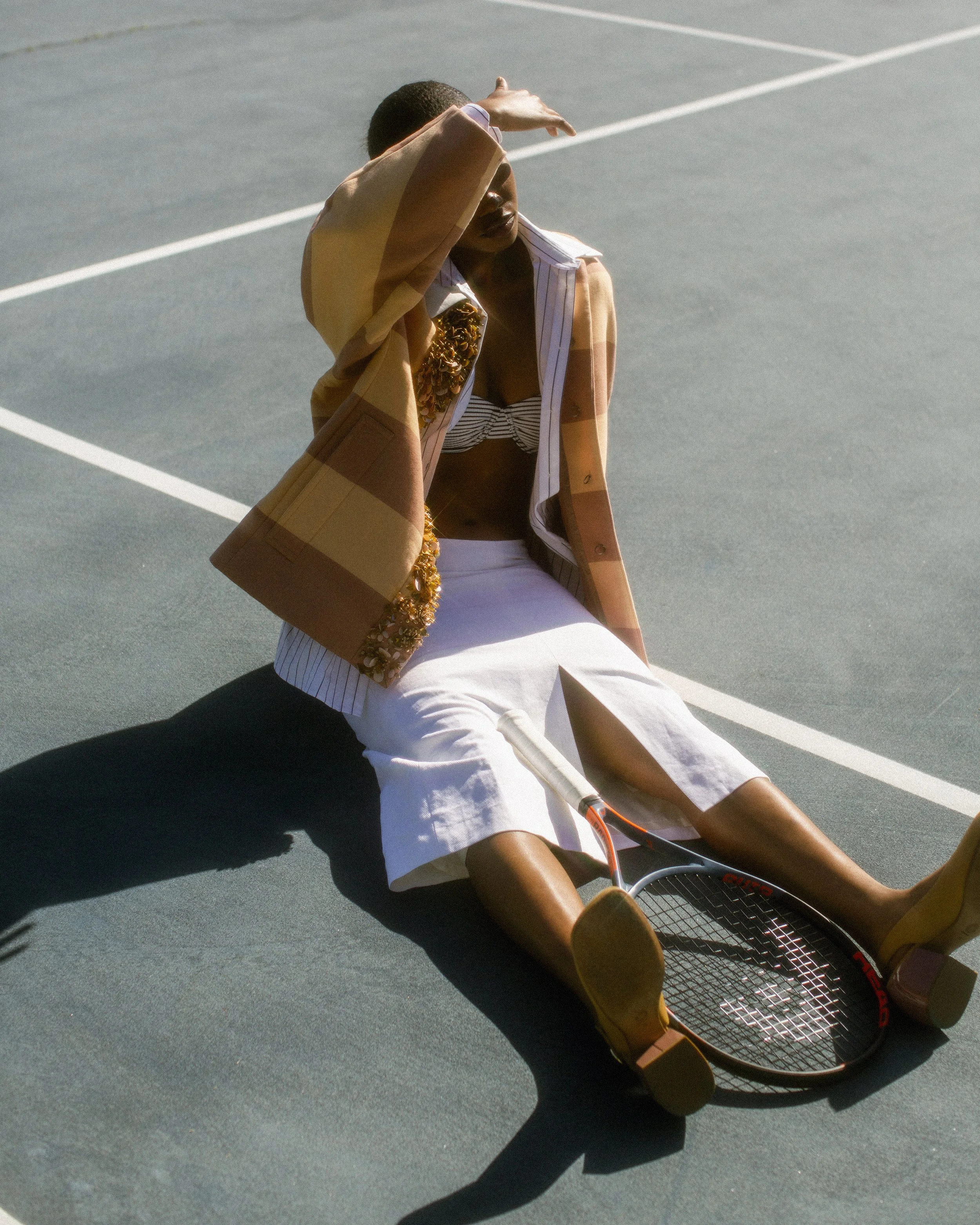 A Dries Van Noten focused story shot on tennis courts. The setting mirrors the strong stripes and graphic patterns throughout the collection, creating a playful balance between sport and high fashion.