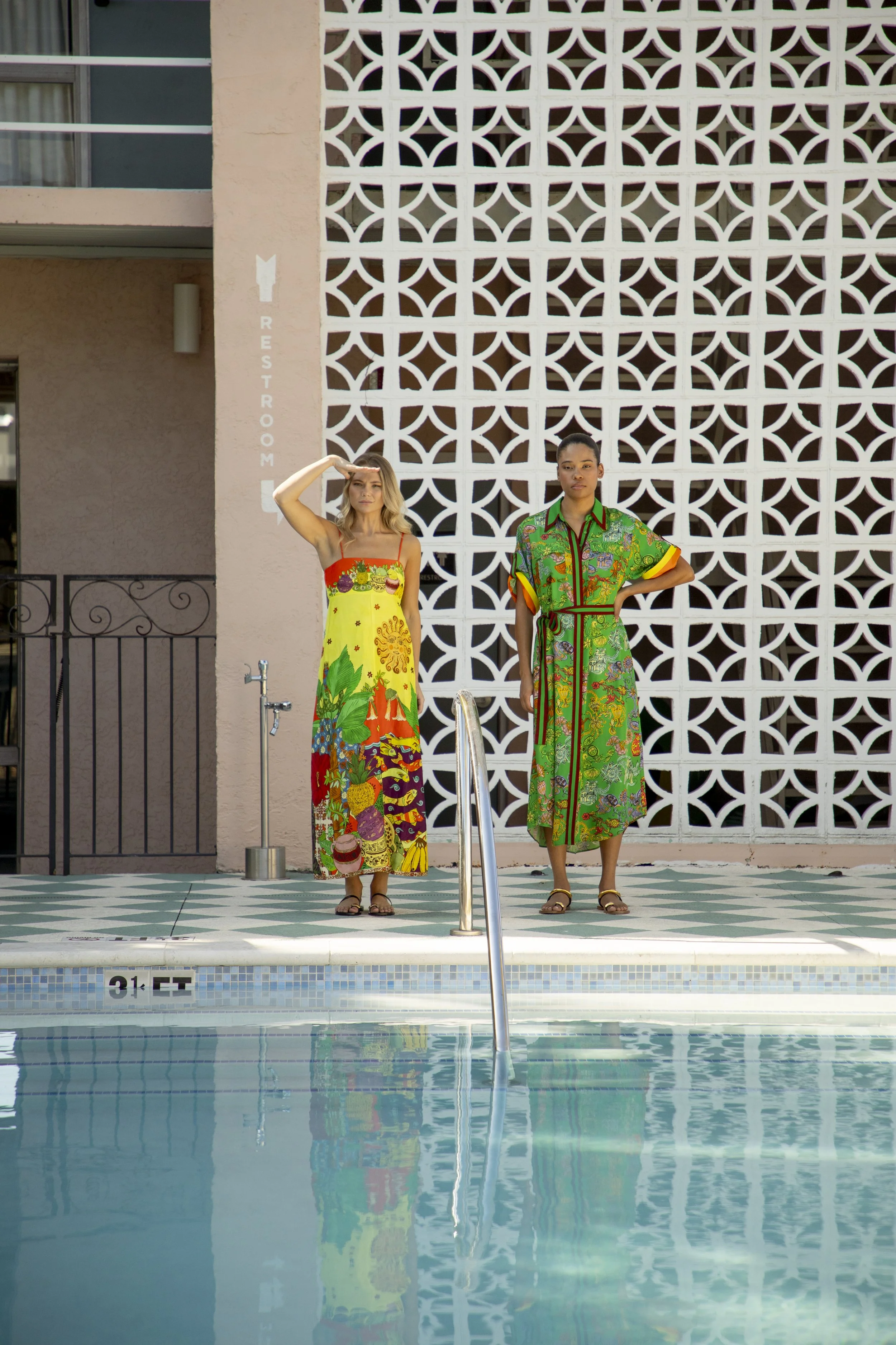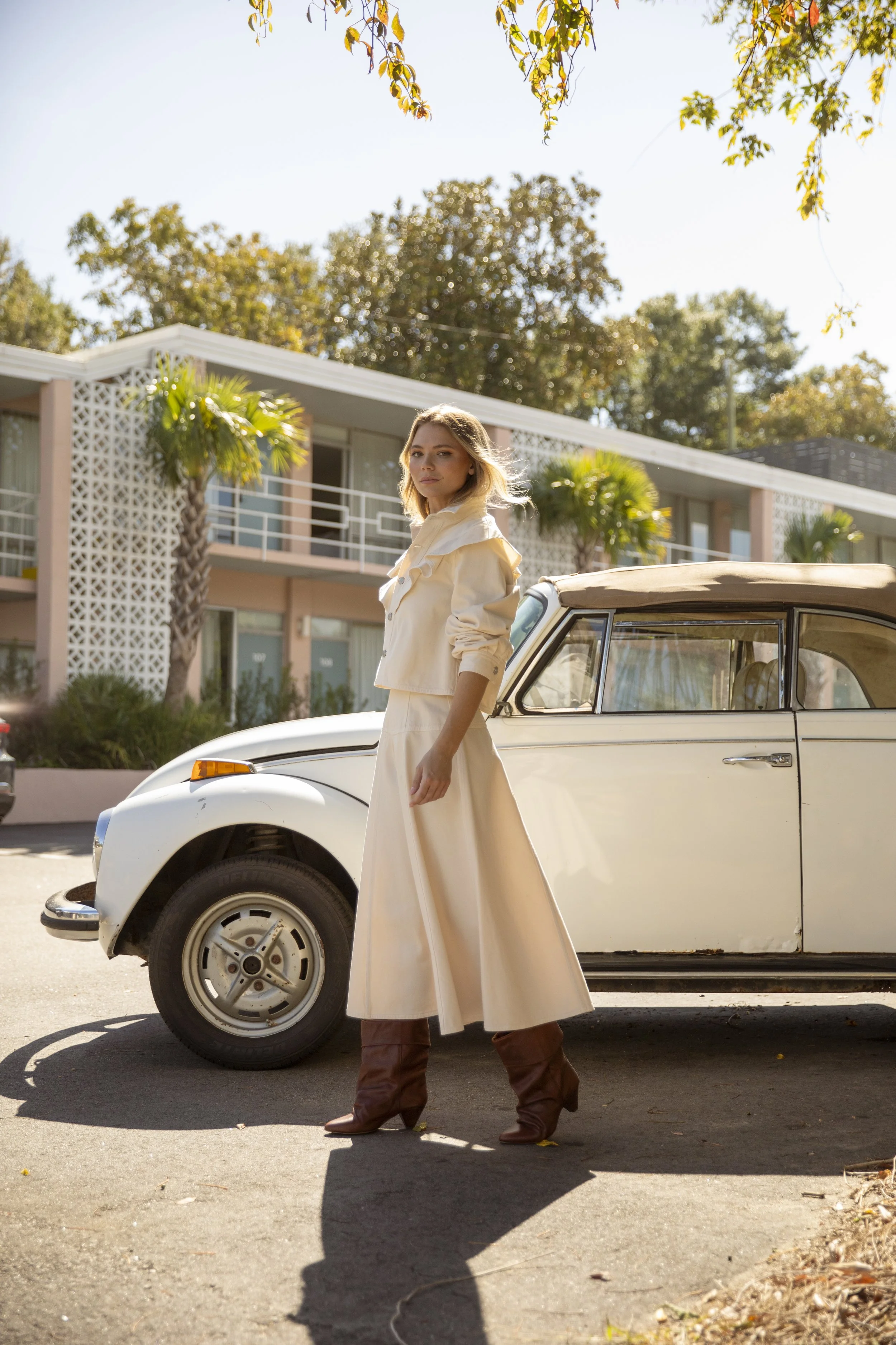 Shot at the Starlight Motor Inn, this story draws inspiration from the sun soaked glamour of Slim Aarons. Bold resort color, polished silhouettes, and effortless confidence define the edit. The styling blends holiday sophistication with mid century leisure, creating a world that feels nostalgic yet modern.